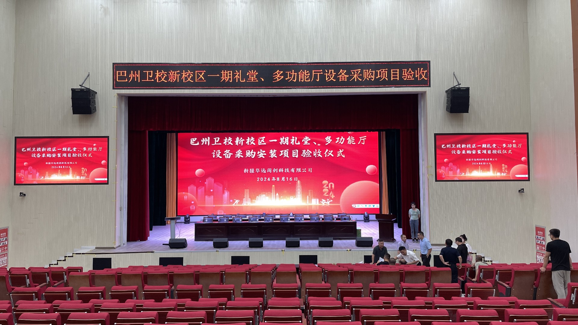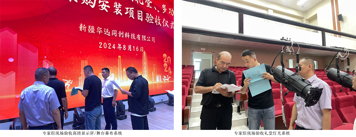 2024年8月16日,由新疆華遠同創(chuàng)科技有限公司承建的巴州衛(wèi)校新校區(qū)一期禮堂、3間多功能廳設(shè)備采購安裝項目,經(jīng)過驗收流程,通過了竣工驗收!本次驗收專家組由新疆巴音郭楞蒙古自治州衛(wèi)生學(xué)校、新疆科技學(xué)院等單位的領(lǐng)導(dǎo)及專家共同組成。驗收組通過聽取匯報、現(xiàn)場察看以及逐一核對項目資料等方式,在充分討論和實地審核的基礎(chǔ)上,認為我方交付的項目的質(zhì)量、舞臺機械升降、視聽效果等各個系統(tǒng)達到了設(shè)計標準和要求,符合使用需求,一致同意通過驗收!