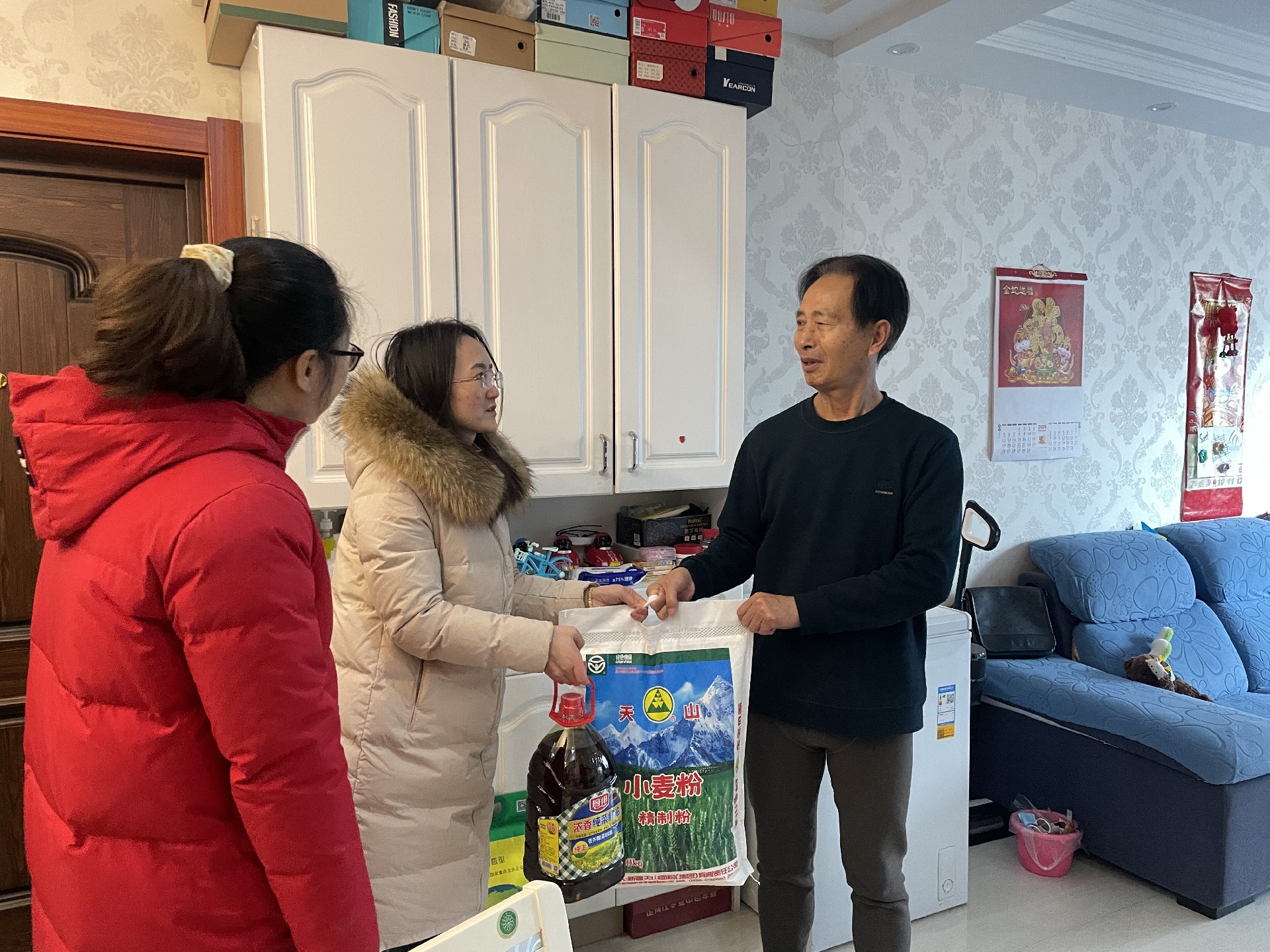 慰問現(xiàn)場,楊長??偨?jīng)理親自帶隊,和社區(qū)工作人員將慰問品送到警務(wù)站一線民警手中,對他們長期扎根一線,保護人民群眾生命財產(chǎn)安全表達了誠摯的感謝。隨后,社區(qū)人員和公司代表一同將米面油等慰問物資,分別送到5位退伍軍人家里,并與他們交流生活近況,叮囑他們保重身體。