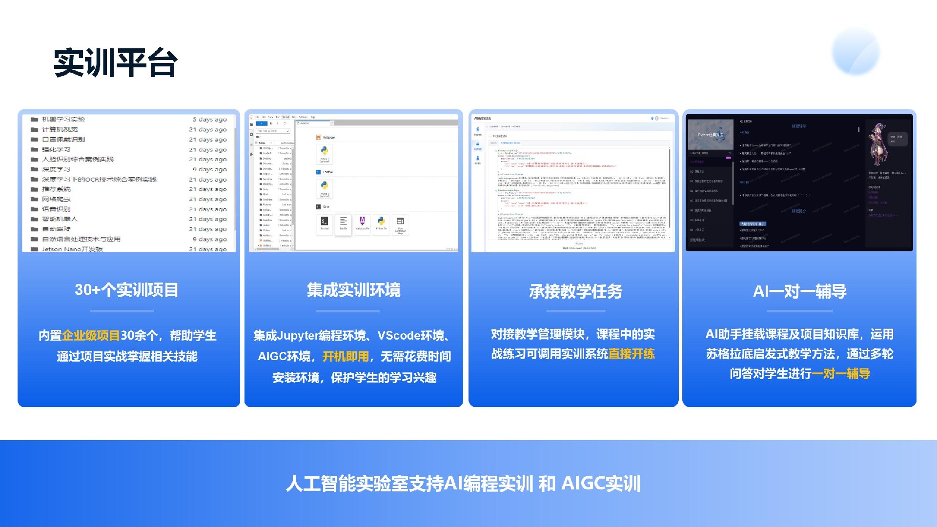 培訓(xùn)會上,專家老師深度講解北大青鳥人工智能平臺的核心技術(shù)、基礎(chǔ)設(shè)置及教育應(yīng)用場景。該平臺依托DeepSeek,集成主流編程環(huán)境、編程語言及人工智能框架,采用私有化部署,能夠針對不同學(xué)校(k12、中高職、??啤⒈究频雀鱾€教育層次)的個性化需求,提供定制化服務(wù)。人工智能平臺功能豐富多樣,具有深厚的課程資源和AI技術(shù)積累,包括AI實(shí)訓(xùn)平臺、教學(xué)平臺、教研服務(wù)、科研創(chuàng)新平臺以及教學(xué)資源庫等,能夠?yàn)閹熒峁┲悄芑虒W(xué)輔助和學(xué)習(xí)支持,助力教育質(zhì)量與效率的雙提升。